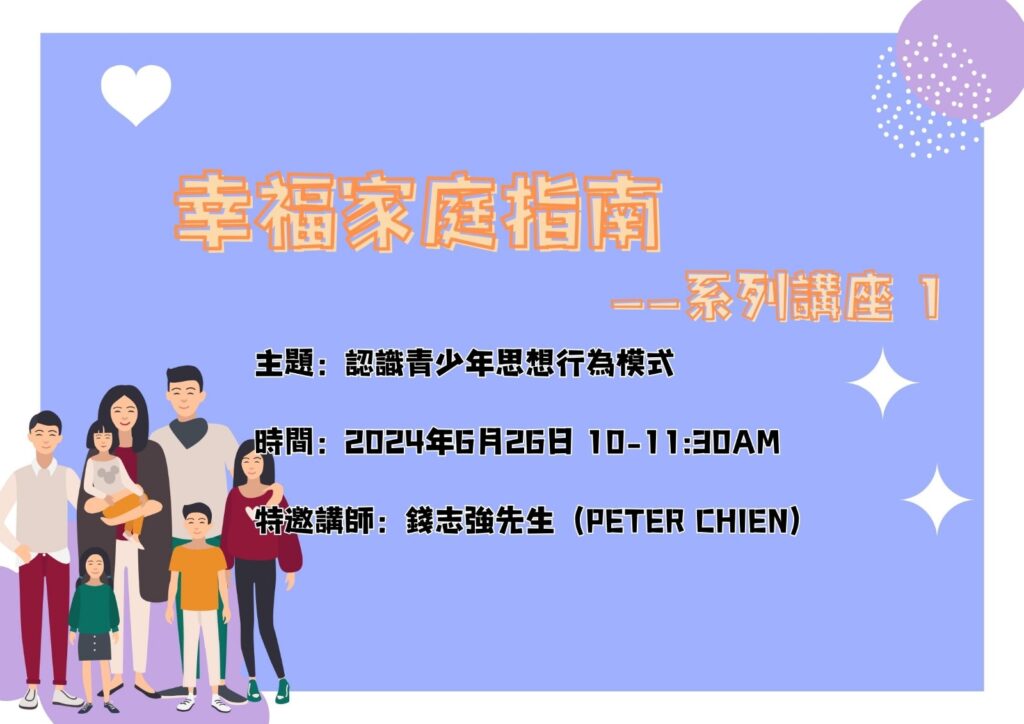 📗講座一:6月26日 10-11:30am 認識青少年思想行為模式