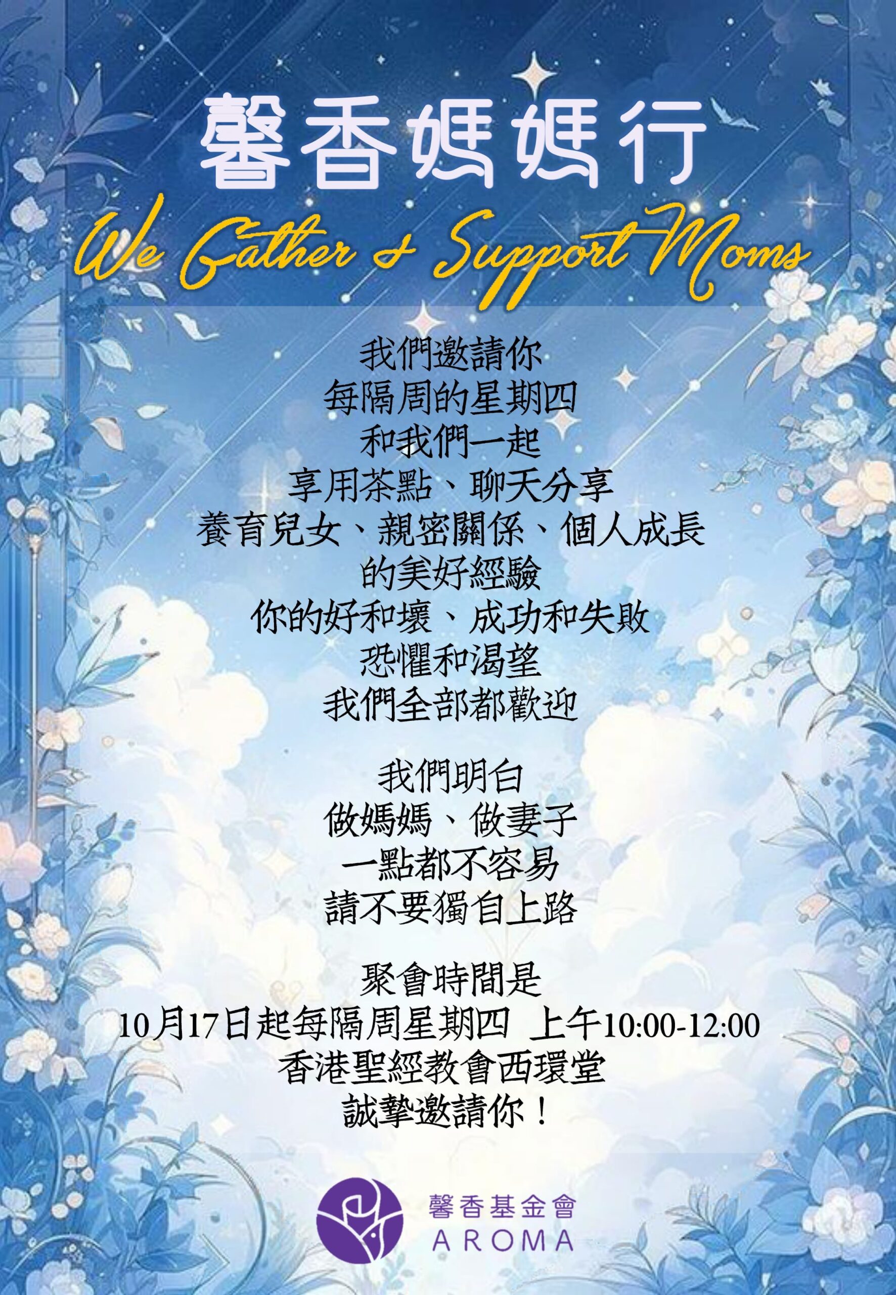 ✨馨香媽媽行聚會恢復啦✨🌟馨香媽媽行分為兩個地點舉行,更多詳情請見海報。