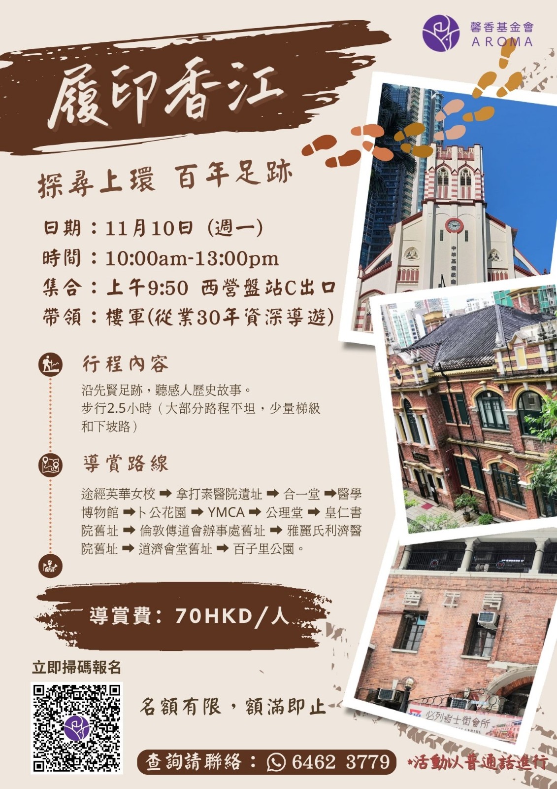 沿先賢足跡,聽感人歷史故事 ,步行2.5小時(大部分路程平坦,少量梯級和落斜路)。