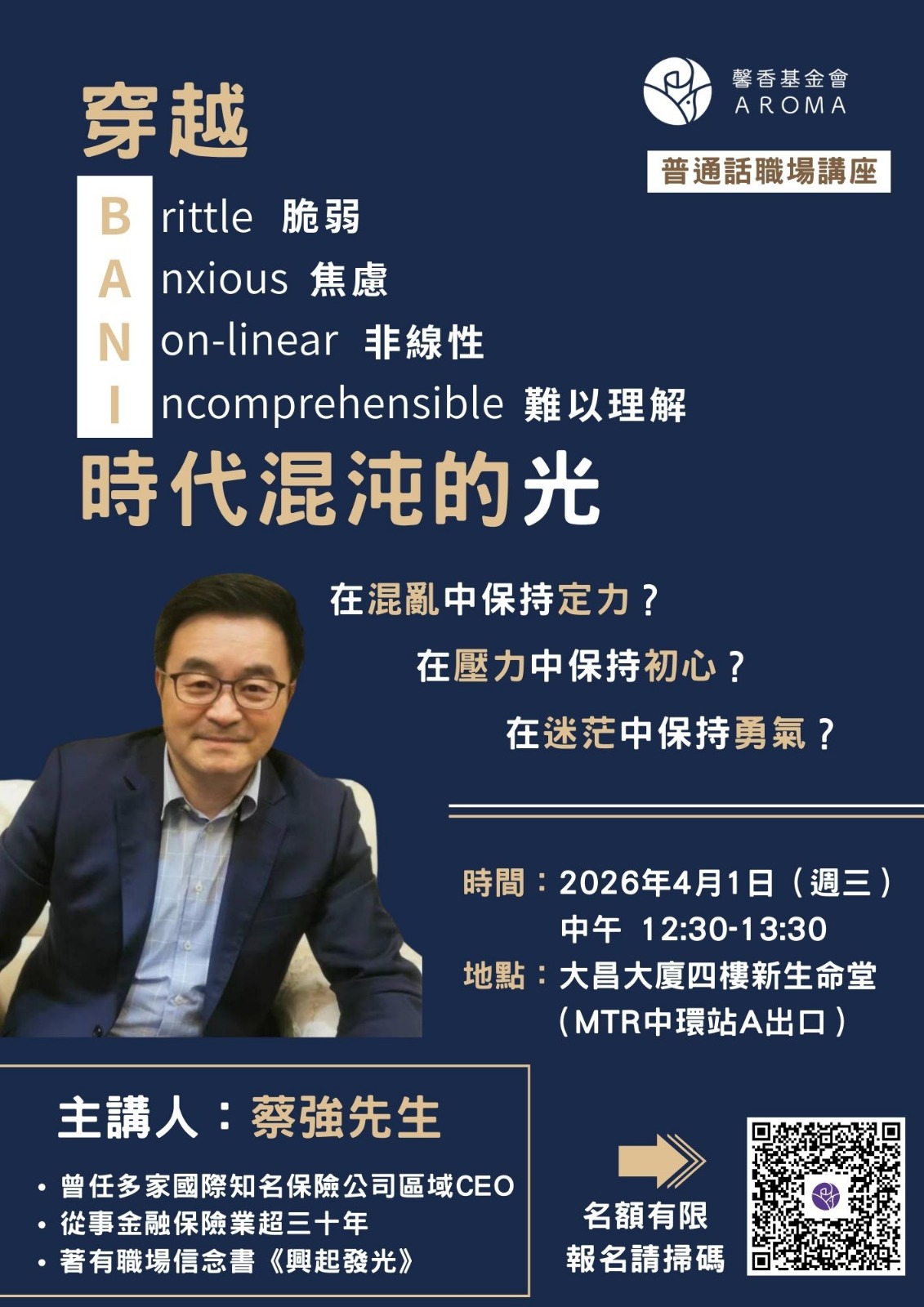 無論你是職場新鮮人、中高階主管,還是正面臨轉型與抉擇的專業人士,這場講座都將為你帶來深刻的啟發與實用的指引。